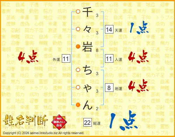 千々岩ちゃんさんの天運は14画の1点!