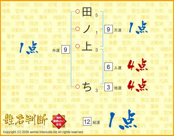 田ノ上ちさんの総運は12画の1点!