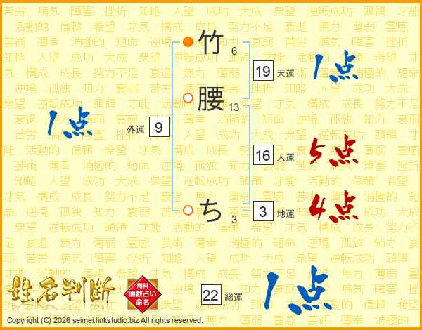 竹腰ちさんの総運は22画の1点!