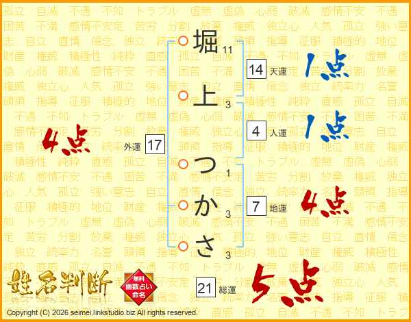 堀上つかささんの総運は21画の5点!
