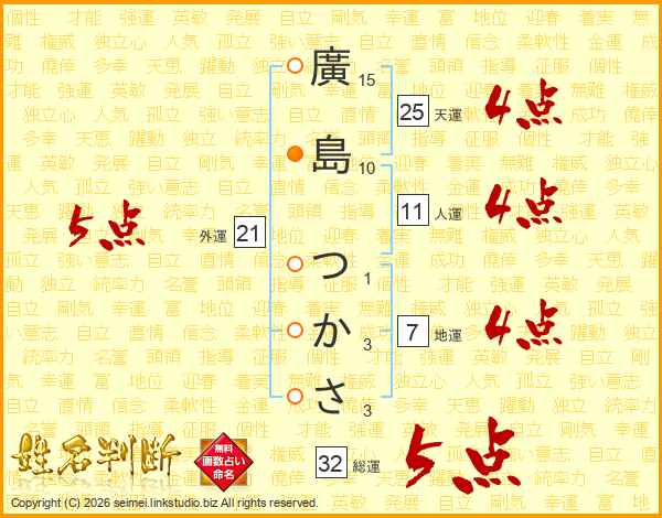 廣島つかささんの天運は25画の4点!