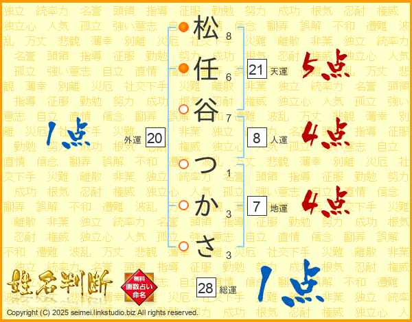 松(8画)任(6画)谷(7画) つ(1画)か(3画)さ(3画)