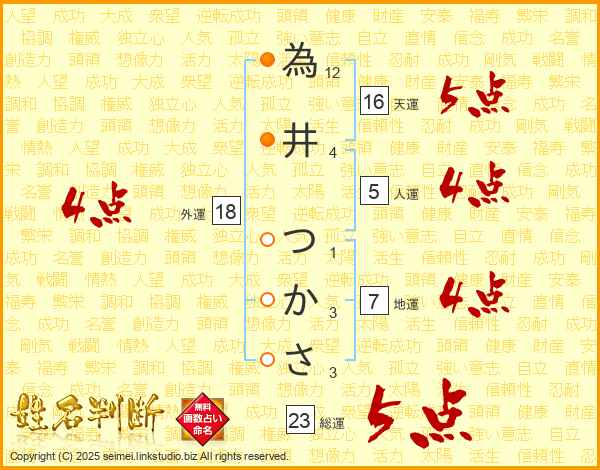為(12画)井(4画) つ(1画)か(3画)さ(3画)