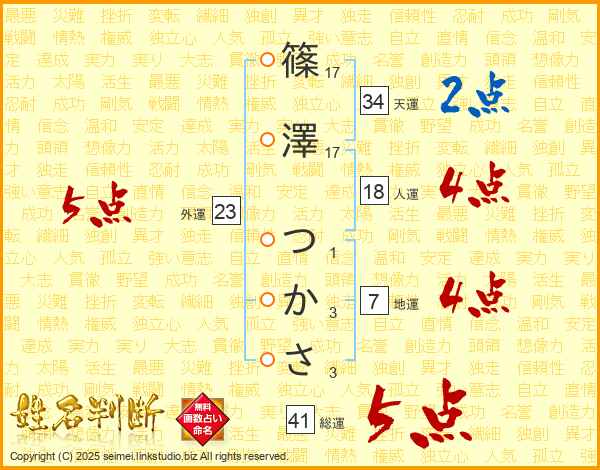 篠(17画)澤(17画) つ(1画)か(3画)さ(3画)