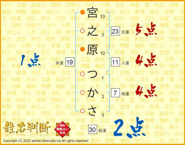 宮之原つかささんの総運は30画の2点