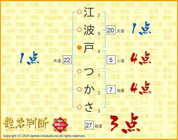 江波戸つかささんの総運は27画の3点