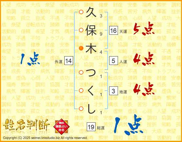 久保木つくしさんの外運は14画の1点!