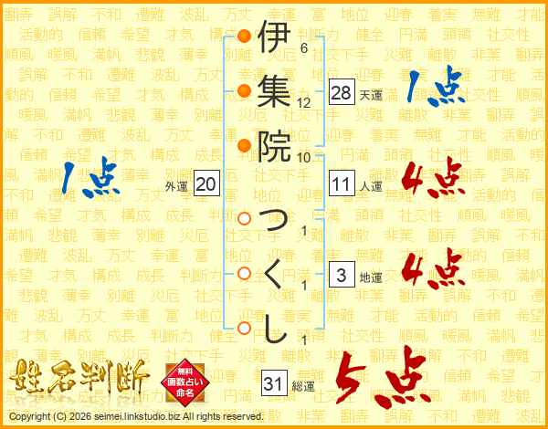 伊集院つくしさんの総運は31画の5点!
