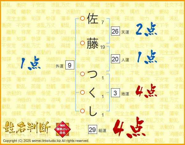 佐(7画)藤(19画) つ(1画)く(1画)し(1画)