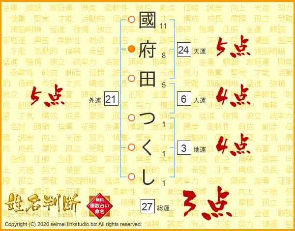 國府田つくしさんの天運は24画の5点!