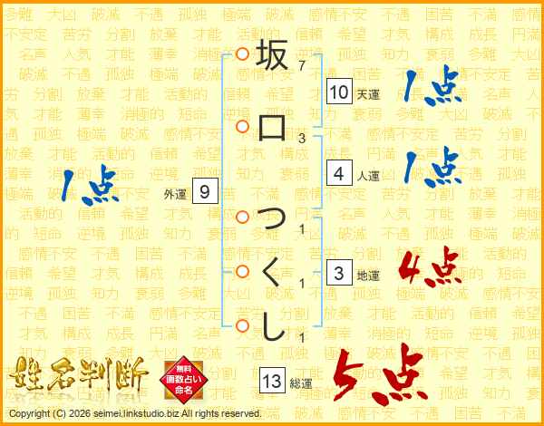 坂口つくしさんの総運は13画の5点!