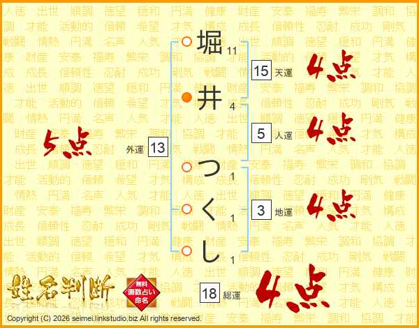 堀井つくしさんの総運は18画の4点!