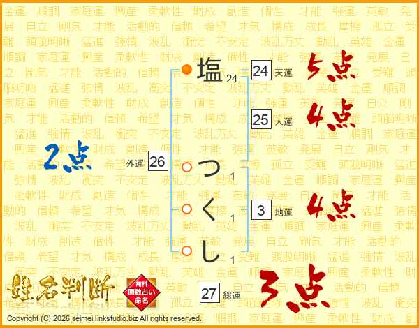 塩つくしさんの総運は27画の3点!