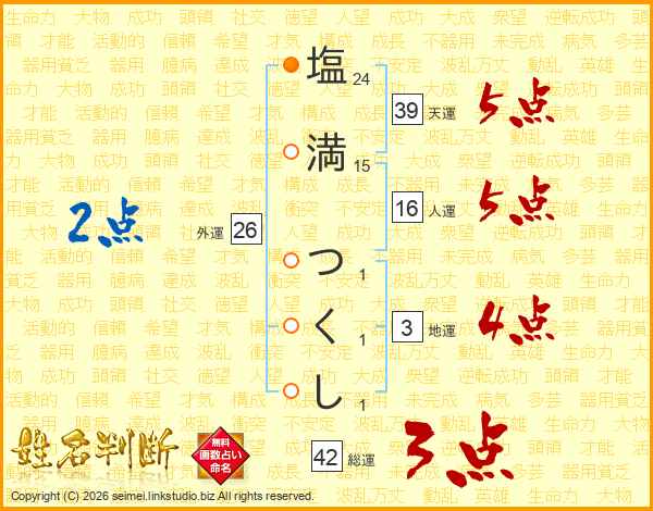 塩満つくしさんの天運は39画の5点!