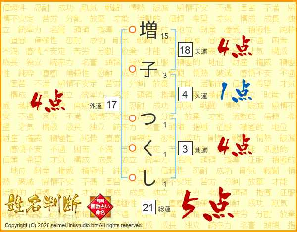 増子つくしさんの総運は21画の5点!