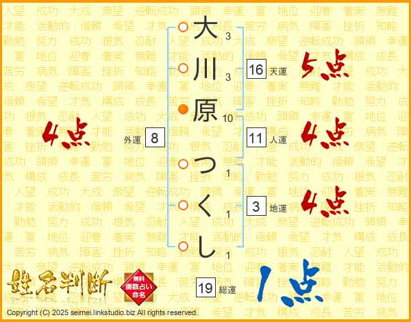 大川原つくしさんの総運は19画の1点!