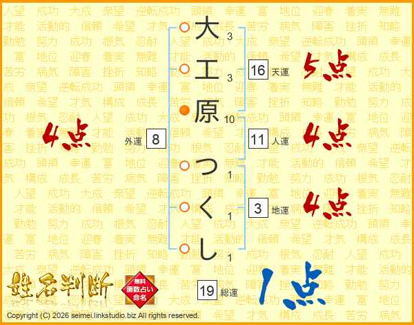 大工原つくしさんの人運は11画の4点!