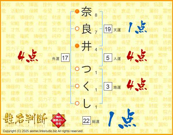 奈(8画)良(7画)井(4画) つ(1画)く(1画)し(1画)