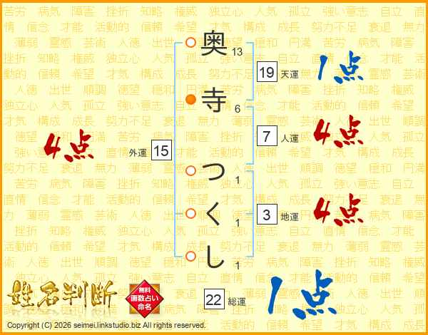奥寺つくしさんの総運は22画の1点!
