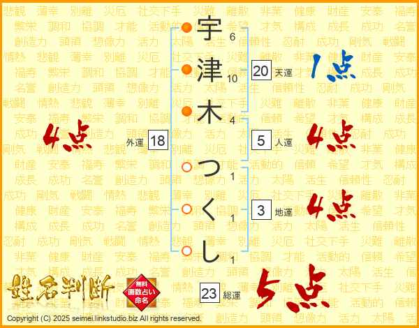 宇津木つくしさんの外運は18画の4点!