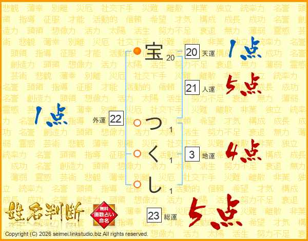 宝つくしさんの総運は23画の5点!
