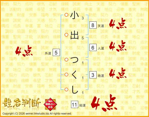 小出つくしさんの総運は11画の4点!