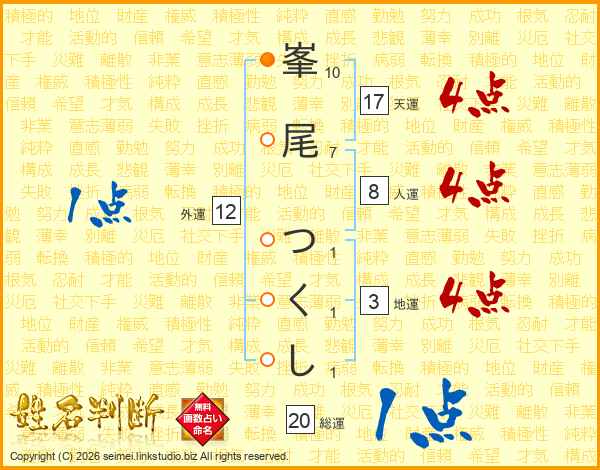 峯尾つくしさんの総運は20画の1点!