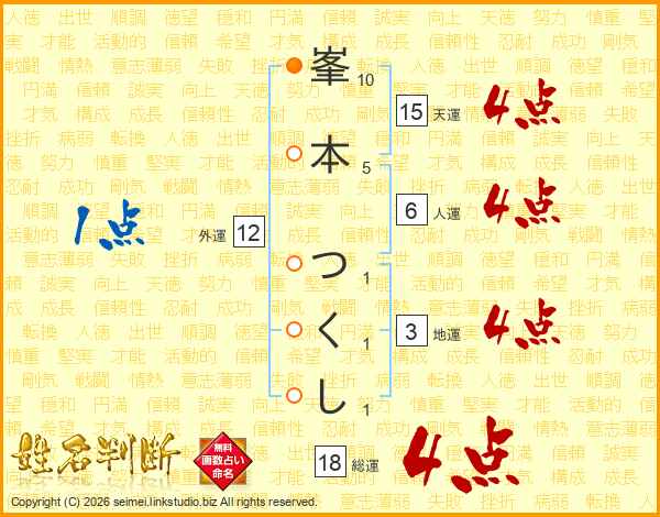峯本つくしさんの総運は18画の4点!