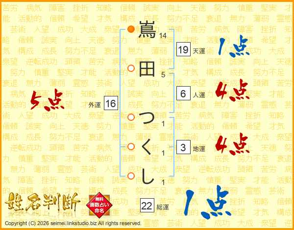 嶌(14画)田(5画) つ(1画)く(1画)し(1画)