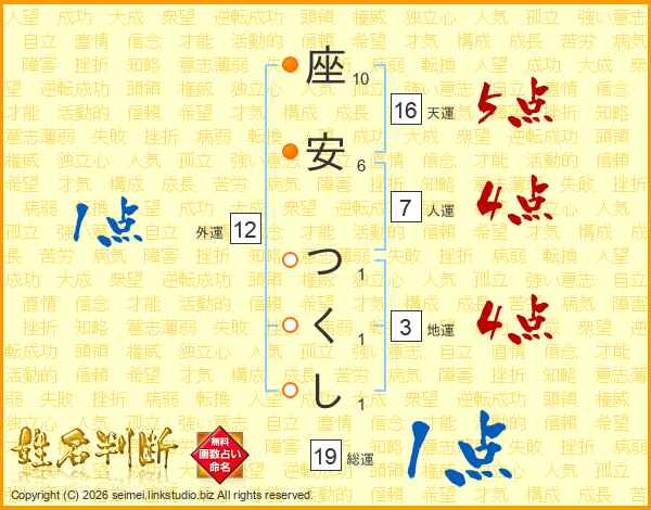 座安つくしさんの総運は19画の1点!