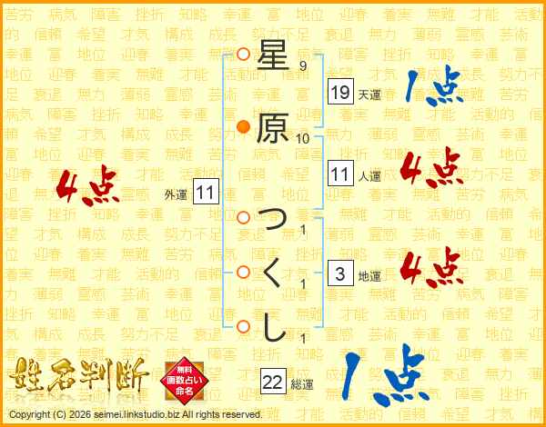 星原つくしさんの総運は22画の1点!