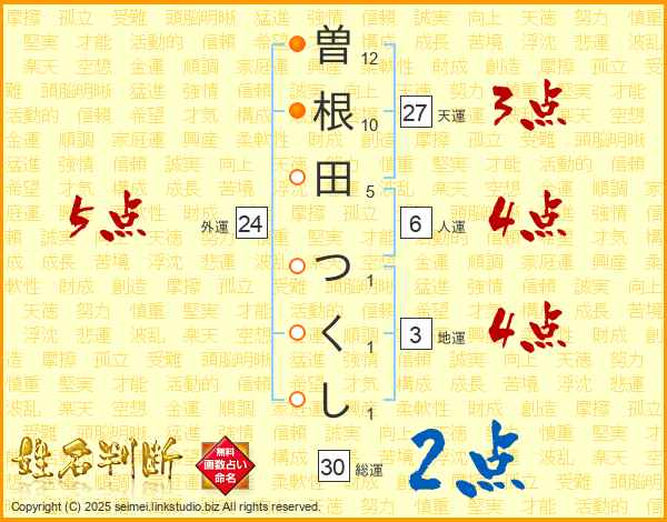 曽根田つくしさんの外運は24画の5点!