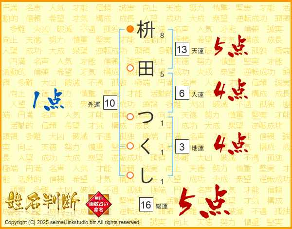 枡(8画)田(5画) つ(1画)く(1画)し(1画)