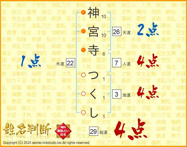 神宮寺つくしさんの総運は29画の4点!