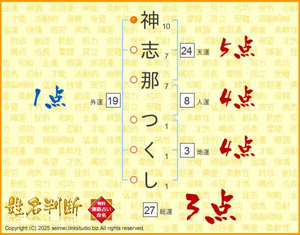 神(10画)志(7画)那(7画) つ(1画)く(1画)し(1画)