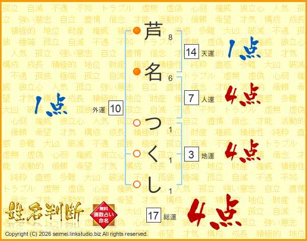 芦名つくしさんの総運は17画の4点!