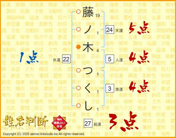 藤(19画)ノ(1画)木(4画) つ(1画)く(1画)し(1画)