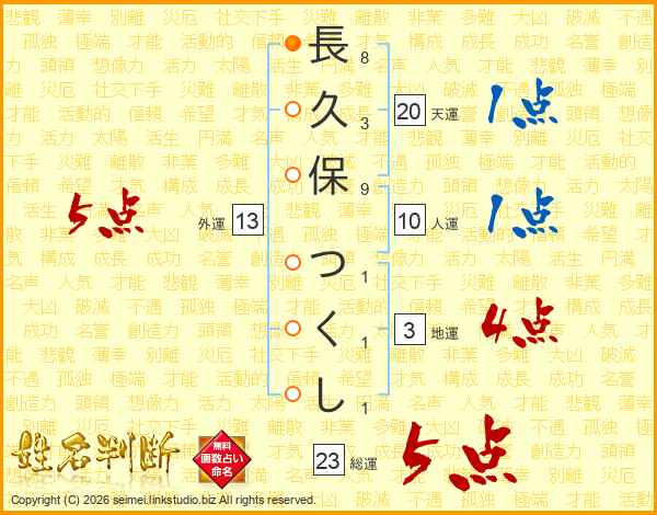 長久保つくしさんの総運は23画の5点!