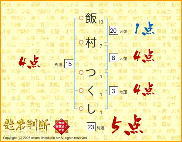 飯村つくしさんの総運は23画の5点!