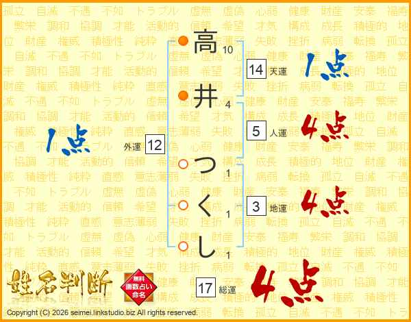 高井つくしさんの総運は17画の4点!
