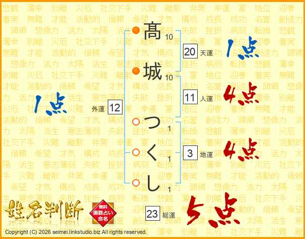 髙城つくしさんの総運は23画の5点!