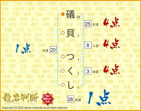 礒貝つくしさんの天運は25画の4点!
