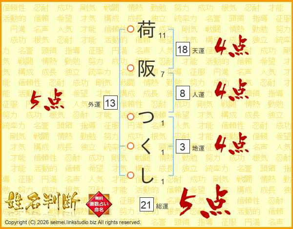 荷阪つくしさんの総運は21画の5点!