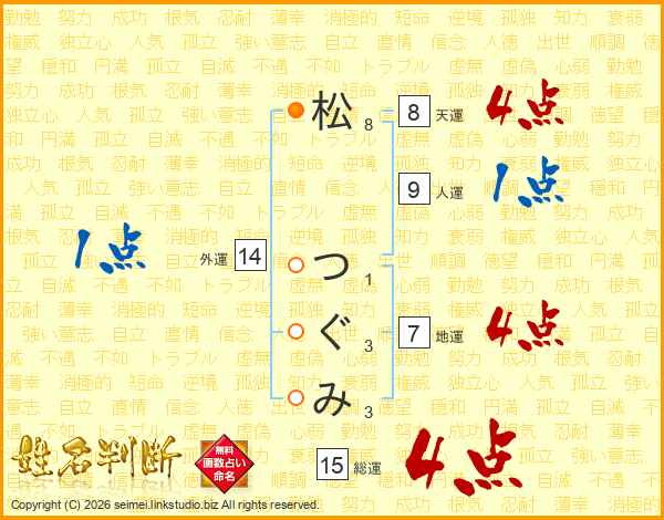 松つぐみさんの総運は15画の4点!