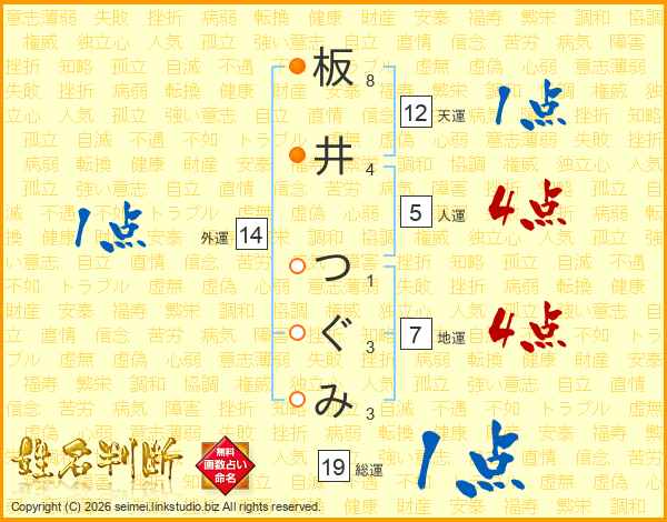 板井つぐみさんの総運は19画の1点!