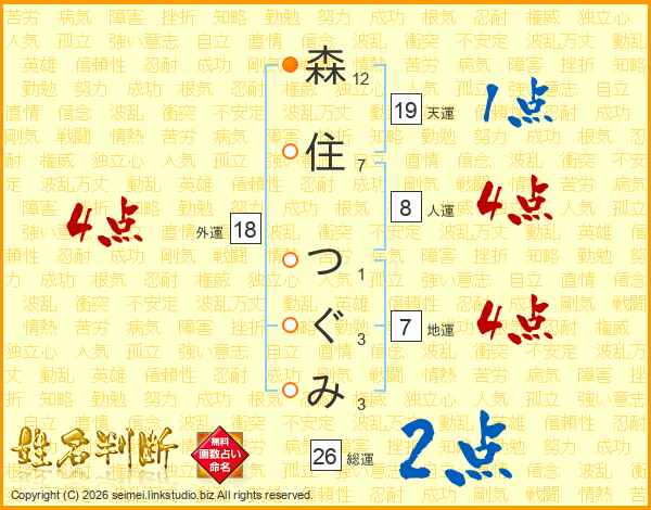 森住つぐみさんの総運は26画の2点!