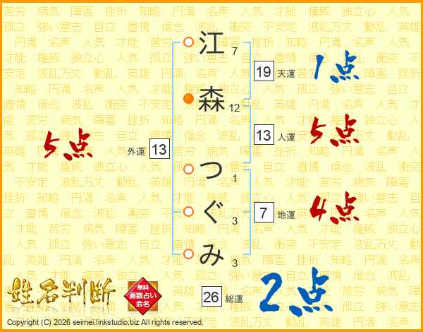 江森つぐみさんの総運は26画の2点!
