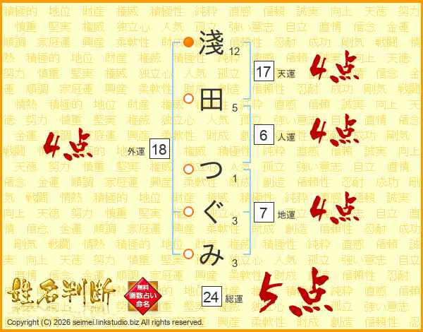 淺田つぐみさんの天運は17画の4点!