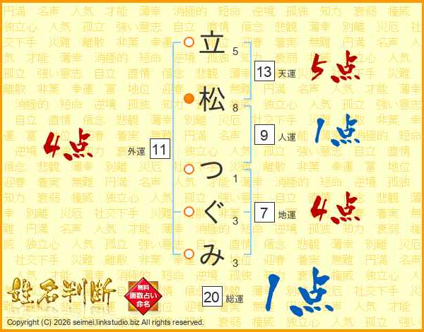 立(5画)松(8画) つ(1画)ぐ(3画)み(3画)