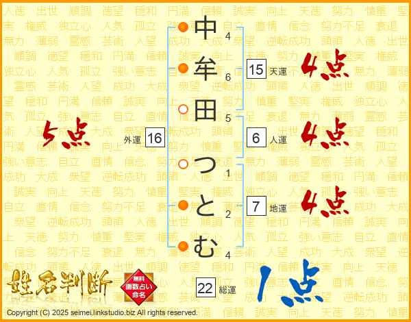 中牟田つとむさんの天運は15画の4点!